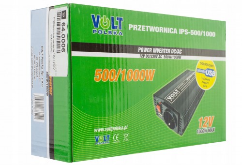 Przedmiotem oferty jest przetwornica napięcia samochodowa IPS-500/1000 24/230V 500/1000W USB - VOLT POLSKA.