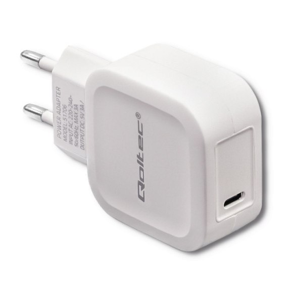 Qoltec Ładowarka sieciowa 20W | 5-12V |1.67-3A | USB typ C | PD | Biała