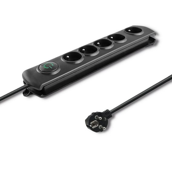 Listwa zasilająca Quick Switch z ochroną przeciwprzepięciową Ilość gniazd sieciowych: 5 szt. z uziemieniem Długość przewodu: 3 m Napięcie znamionowe: 230V / 50Hz