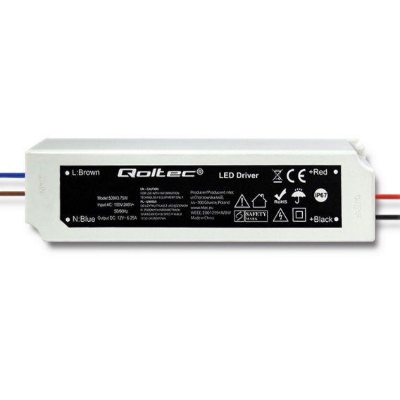 Qoltec Zasilacz impulsowy LED IP67 | 75W | 12V | 6.25A | Wodoodporny