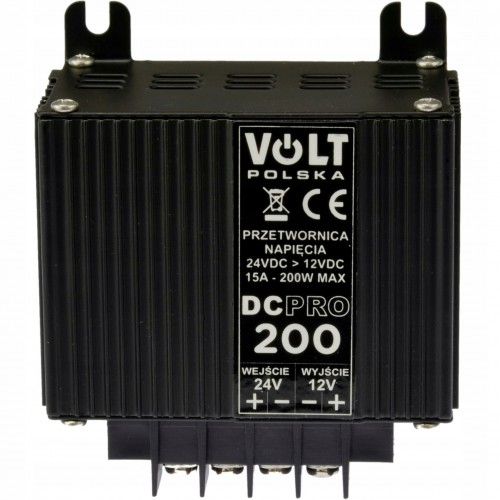 Elektroniczna przetwornica DC-PRO-200 24/12V 200W 15A to nowoczesne i bezzakłóceniowe urządzenie przeznaczone do obniżania napięcia instalacji samochodów ciężarowych z 24 na 12V.