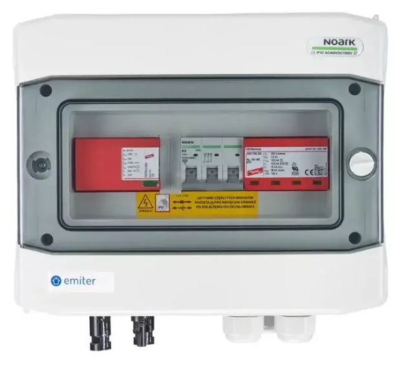 Rozdzielnica przył. DCAC hermetyczna EMITER z ogranicznikiem przepięć DC Dehn 1000V typu 1+2, 1 x łańcuch PV, 1 x MPPT // ogr. AC typ 1+2, 16A 3-F