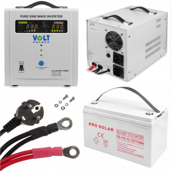 • Sinus Pro 1500E + Akumulator Deep Cycle VPRO Solar 110Ah Zestaw awaryjny