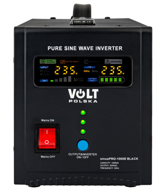Przedmiotem oferty jest zasilacz awaryjny Sinus Pro 1000 E (12V/230V) 700/1000 W w kolorze czarnym.