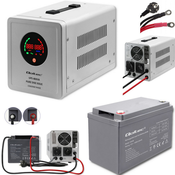 Zasilacz awaryjny Pure Sine Wave UPS | 800VA | 560W | Stała faza + Akumulator 100Ah